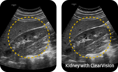 Уменьшение шума для улучшения качества 2D-изображения ClearVision улучшает контрастность границ и создает четкие 2D-изображения для оптимальной диагностики.