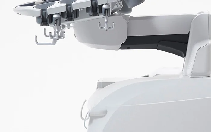 Под панелью управления и на корпусе системы предусмотрены специальные крючки и держатели для кабелей датчиков. Благодаря этому, кабели надёжно защищены от повреждения при использовании или перемещении системы.
