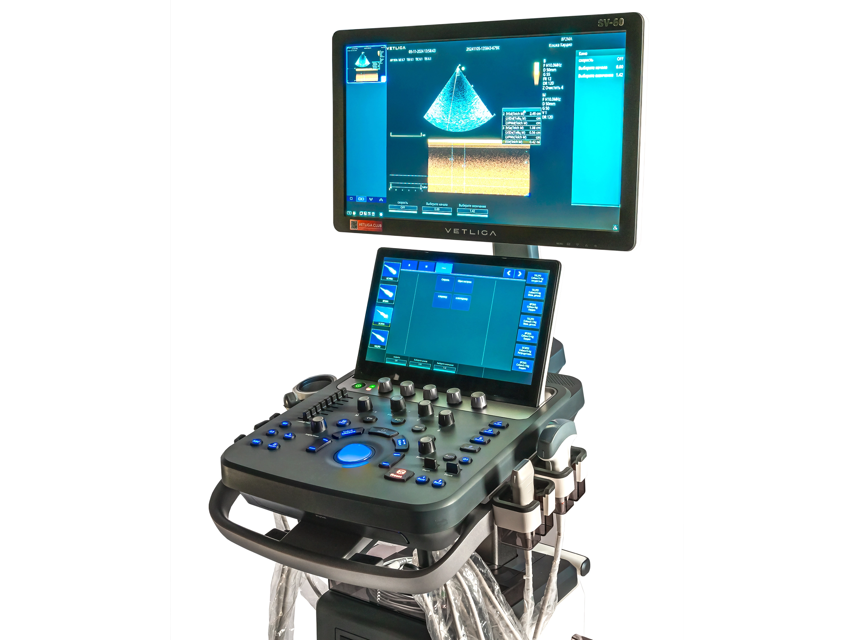 VETLIGA SV-60 - стационарная ветеринарная ультразвуковая диагностическая система экспертного класса. Аппарат создан для клиник, которым нужен расширенный набор клинических сценариев и более глубокие возможности для анализа по сравнению с базовыми моделями, при этом сохраняя все базовые инструменты для ежедневной работы.